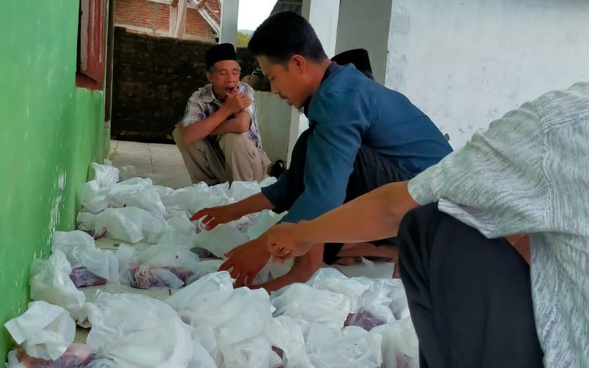 Pemotongan hewan kurban dilaksanakan di halaman musholah Babul Hijrah yang diawali dengan do’a bersama dengan harapan kegiatan yang dilaksanakan lancar dan berkah.