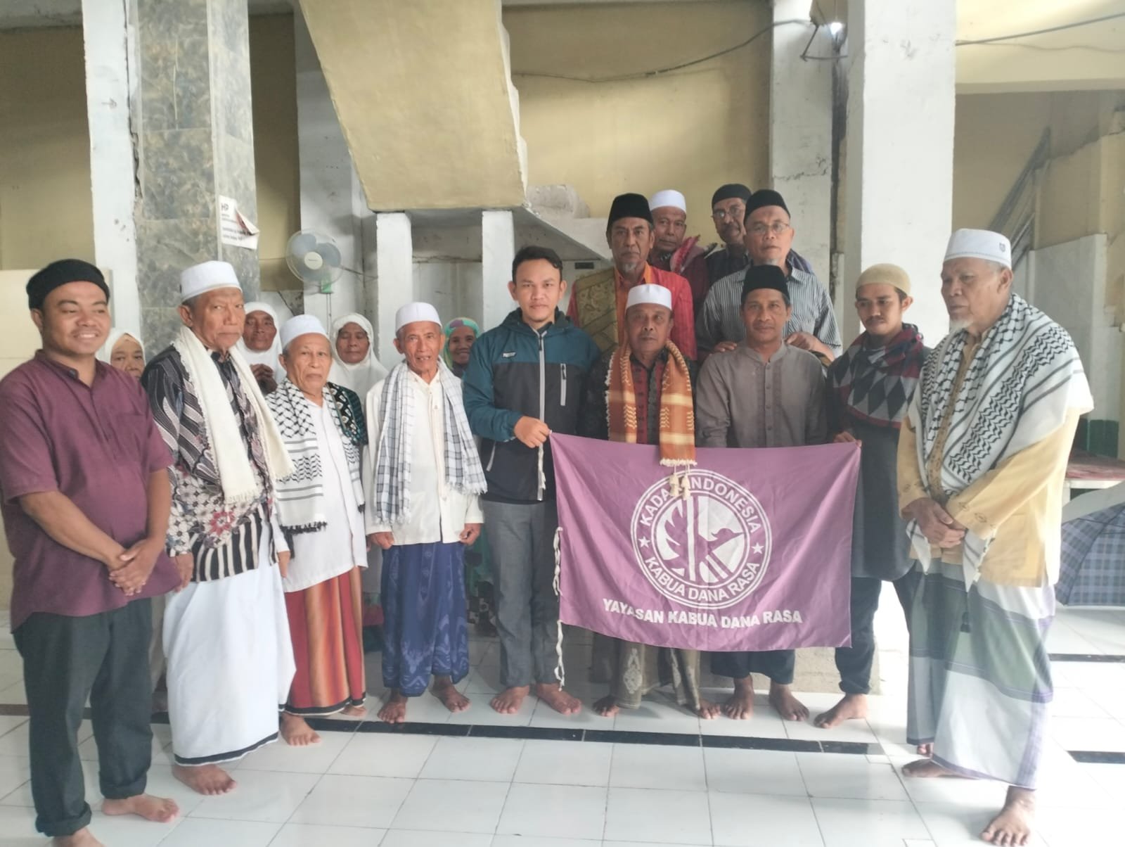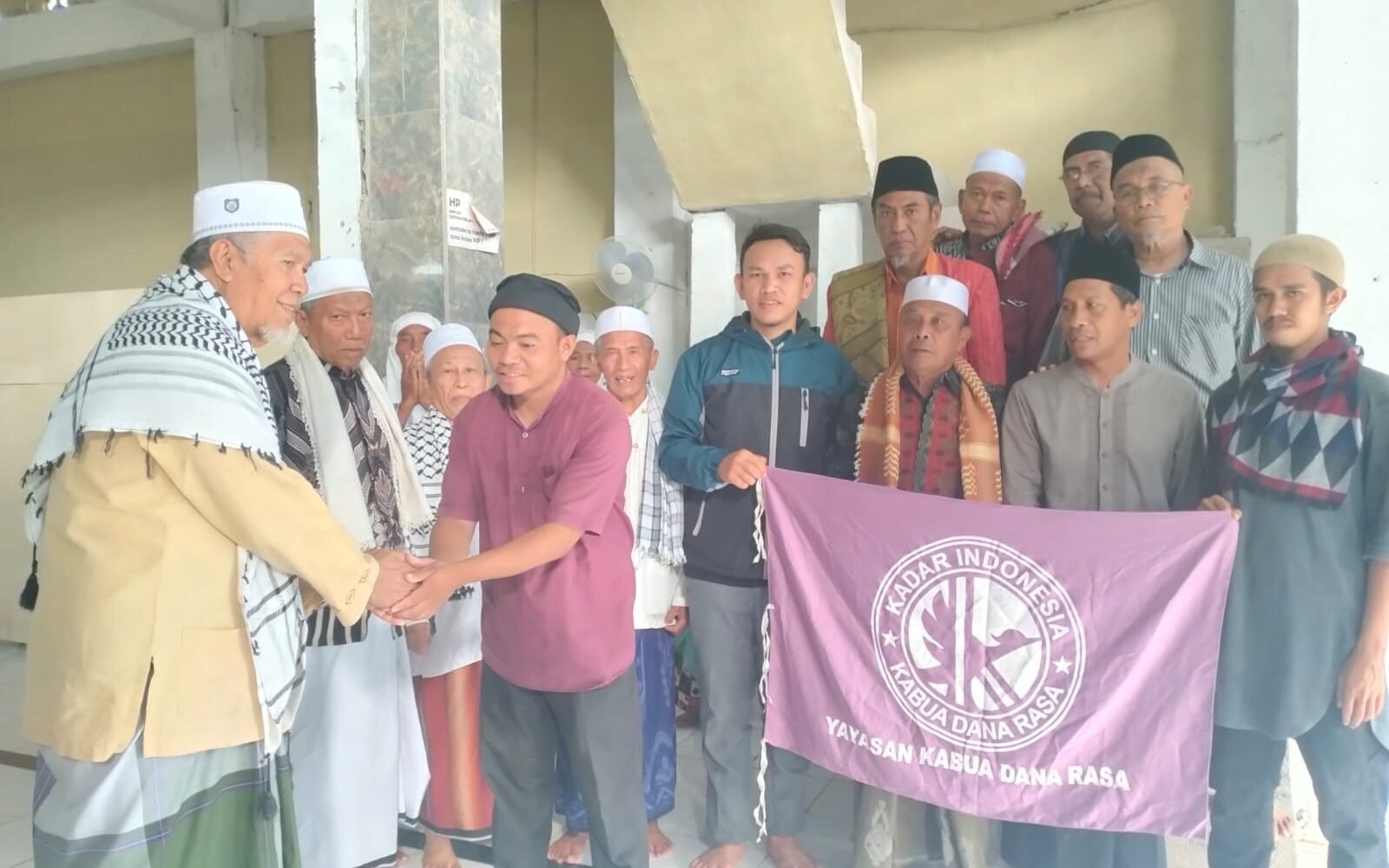 Dalam penyerahan bantuan yayasan Kabua dana rasa diwakili oleh Andang Saputra, S.Pd selaku bendahara yayasan Kabua dana rasa, dan bantuan langsung di terima oleh Ketua DKM Masjid Al-ikhsan yakni H.M.Saud.